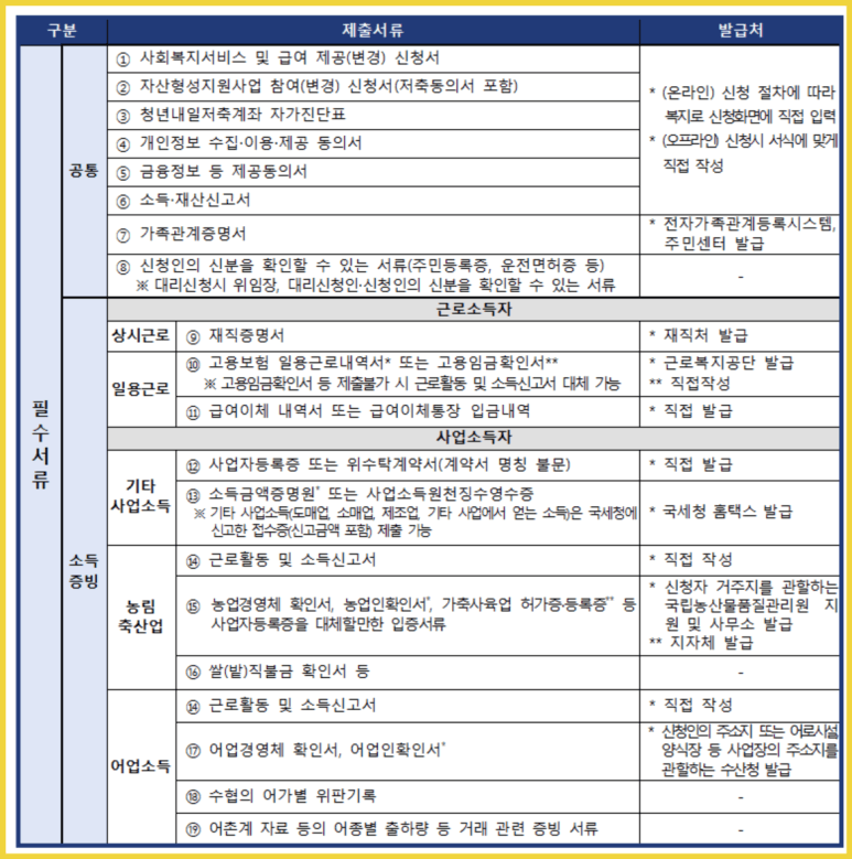 - 기타: 계약서, 사업자등록증, 농림·어업 소득 입증서 등